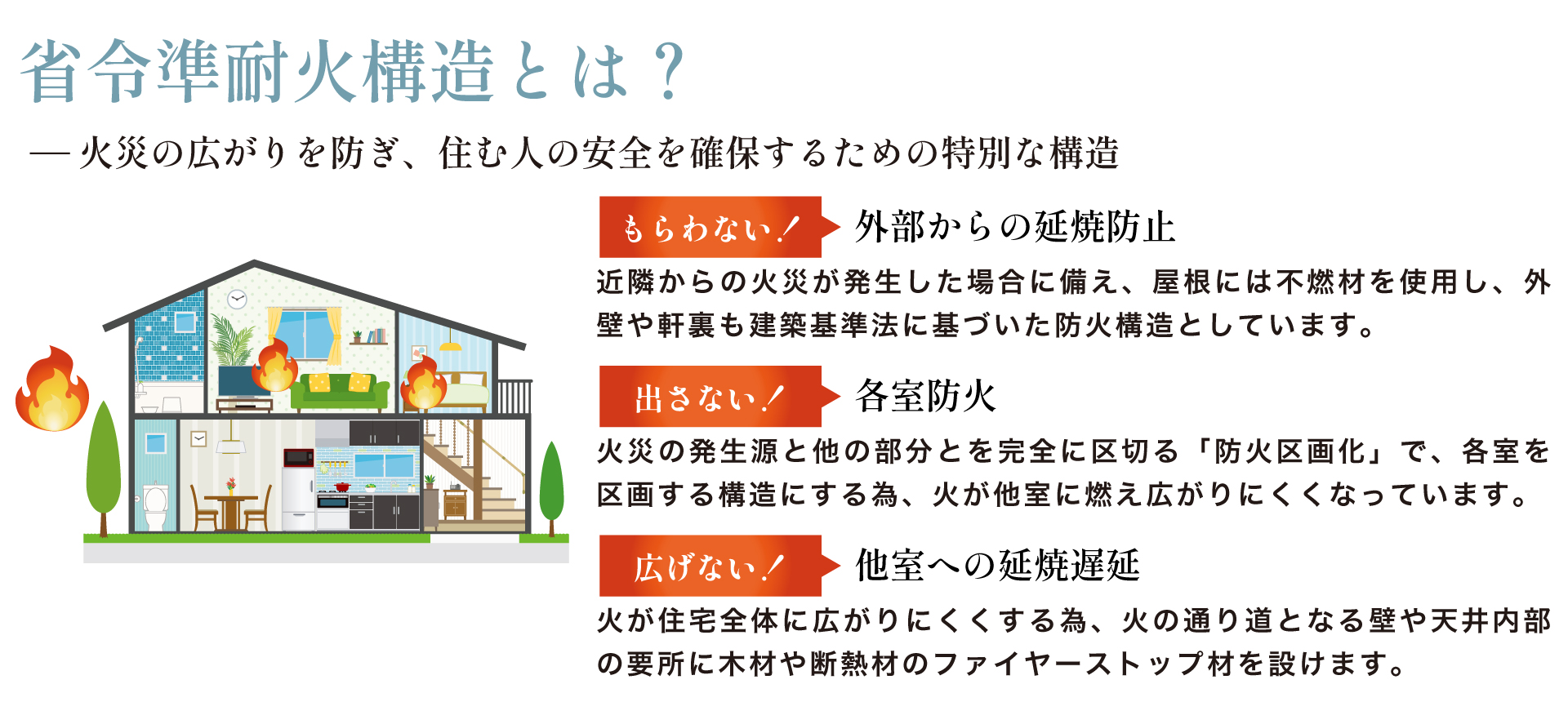 この構造は、外部からの延焼防止・各室間の延焼遅延・主要構造部の防火性能といった観点において、建築基準法の準耐火構造と同等の耐火性能を有するとされています。